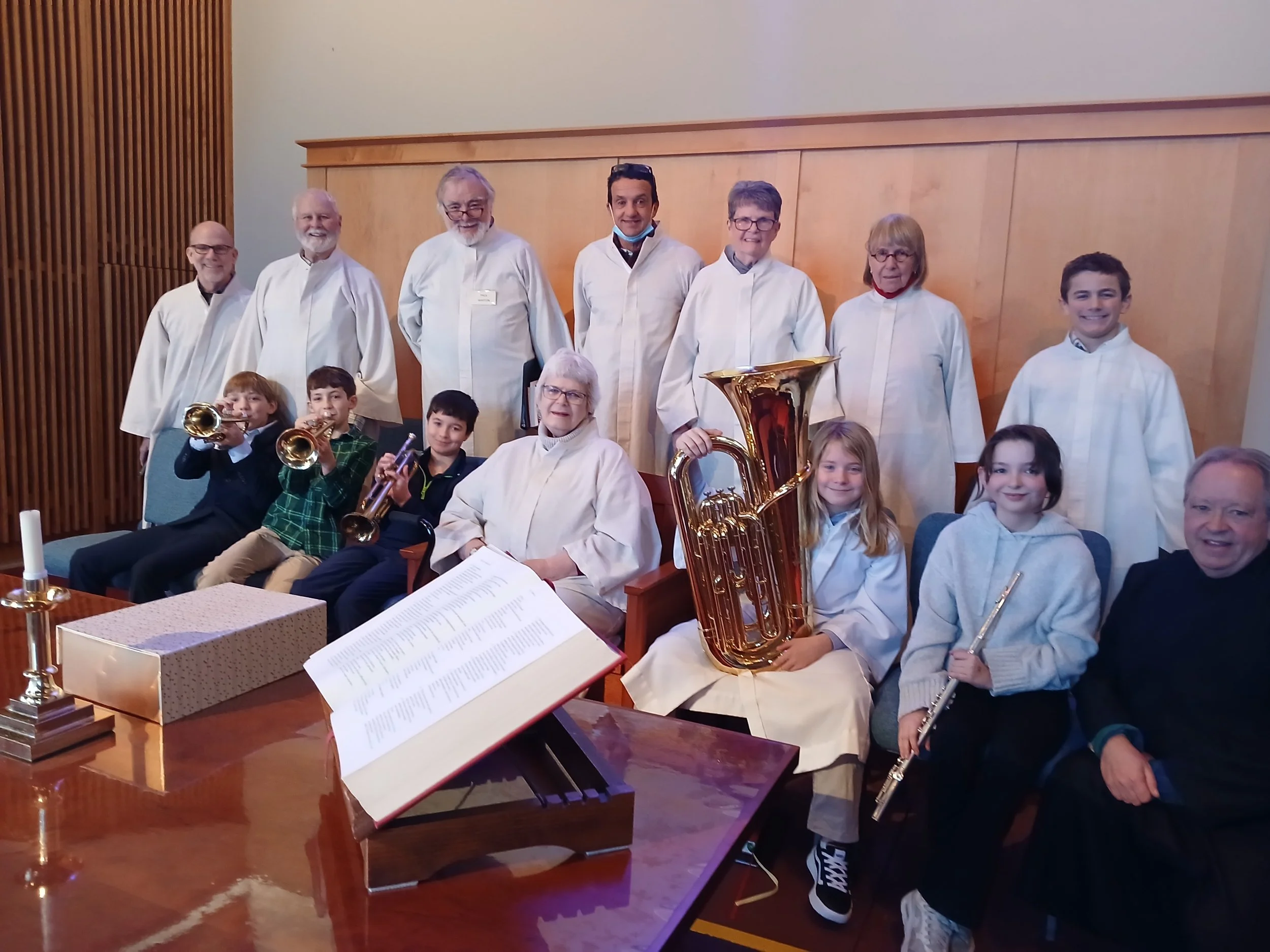Practices are every Tuesday evening at 5:30 in the music room; and on Sunday mornings at 9:00 a.m.